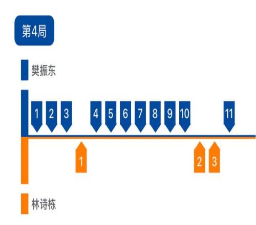 第四局,樊振东势不可挡,10比1开局,没有给林诗栋任何喘息的机会,11比3,樊振东将大比分改写为3比1!