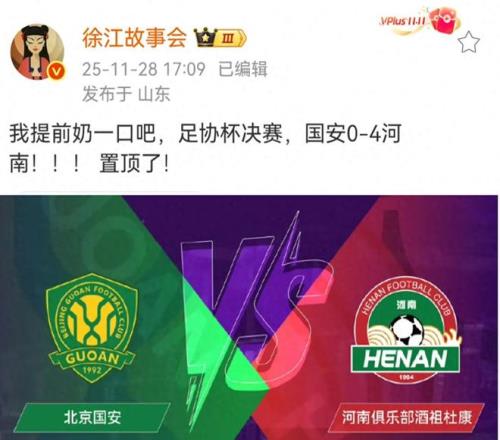 按照赛程安排,本年度的足协杯决赛将于下周六在苏州举行,对决双方分别是北京国安和河南队,对于这场比赛,赛前很多媒体和球迷都在预测比赛的结果。足球媒体人徐江更是给出了一个非常大胆的预测,徐江认为北京国安将会以0-4的大比分输给河南队。如果北京国安在足协杯决赛中失利,本赛季他们三线作战,最终的结果将是颗粒无收。