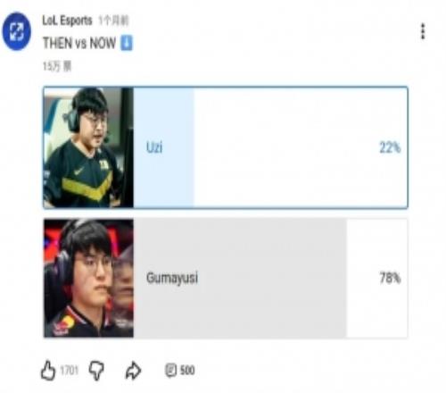 赛事官方发起“过去vs现在”投票:Gumayusi大幅领先Uzi